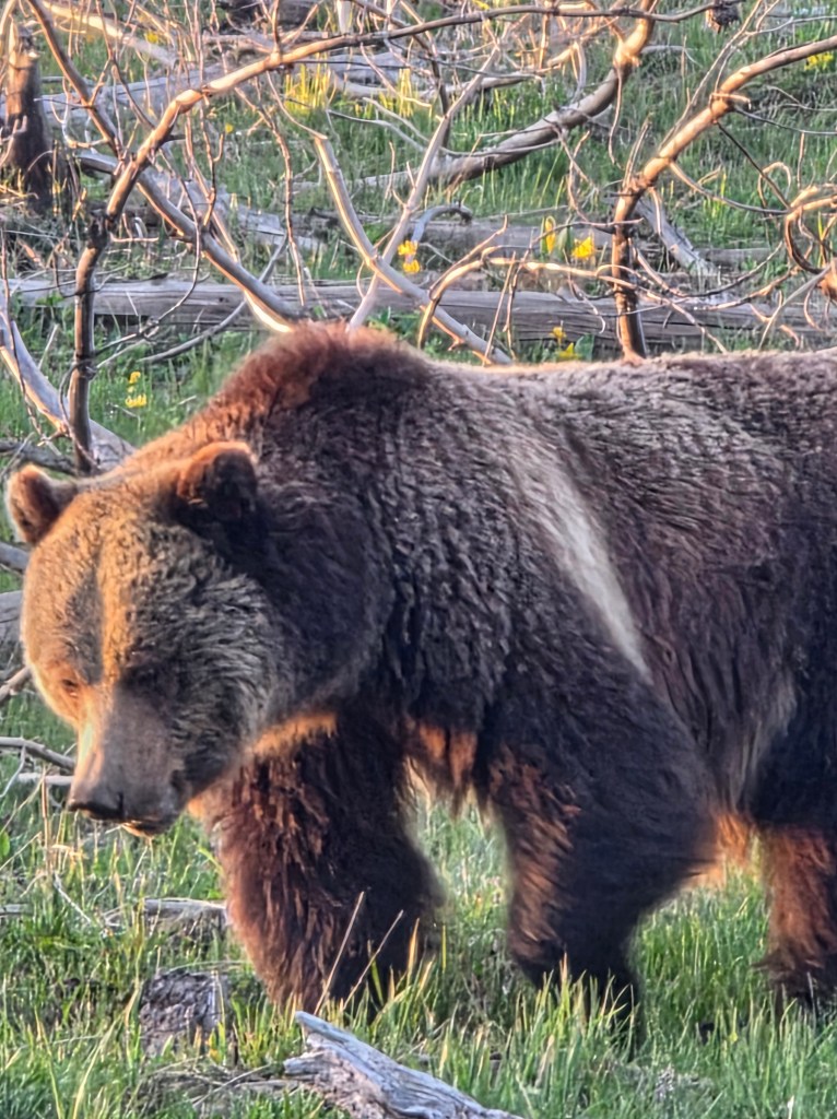 While hiking alongside Shoshone Lake in Yellowstone Park, I stopped to fill up my water bottles from a cold mountain spring that froze my fingers while doing so. Standing up to sling my pack to my shoulders, I found myself less than 50 feet away from the largest grizzly I have seen in the lower Forty-eight. After being alone for two weeks on the trail I caught myself staring at the bear thinking which one of us is going to get off the trail so the other can pass. Then reality hit me, “Hey Dave there is a grizzly bear in front of you and you better get the hell out of its way